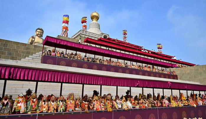 接著上千座神尊神尊、佛祖陸續旗安座置四聖塔中央與大佛平台,千座神佛齊聚在此場面浩大壯觀,裡頭還有少見的原住民祖靈雕像與耶穌圖像、天主教聖母瑪利亞雕像、齊天大聖孫悟空等神明,星雲大師曾說,「各宗教的教義不同,沒有誰高誰低,誰大誰小,不應有所分別。宗教之間彼此要和諧,尊重,包容,交流,應「同中存異,異中求同」,這是世界神明聯誼會最重要的理念。