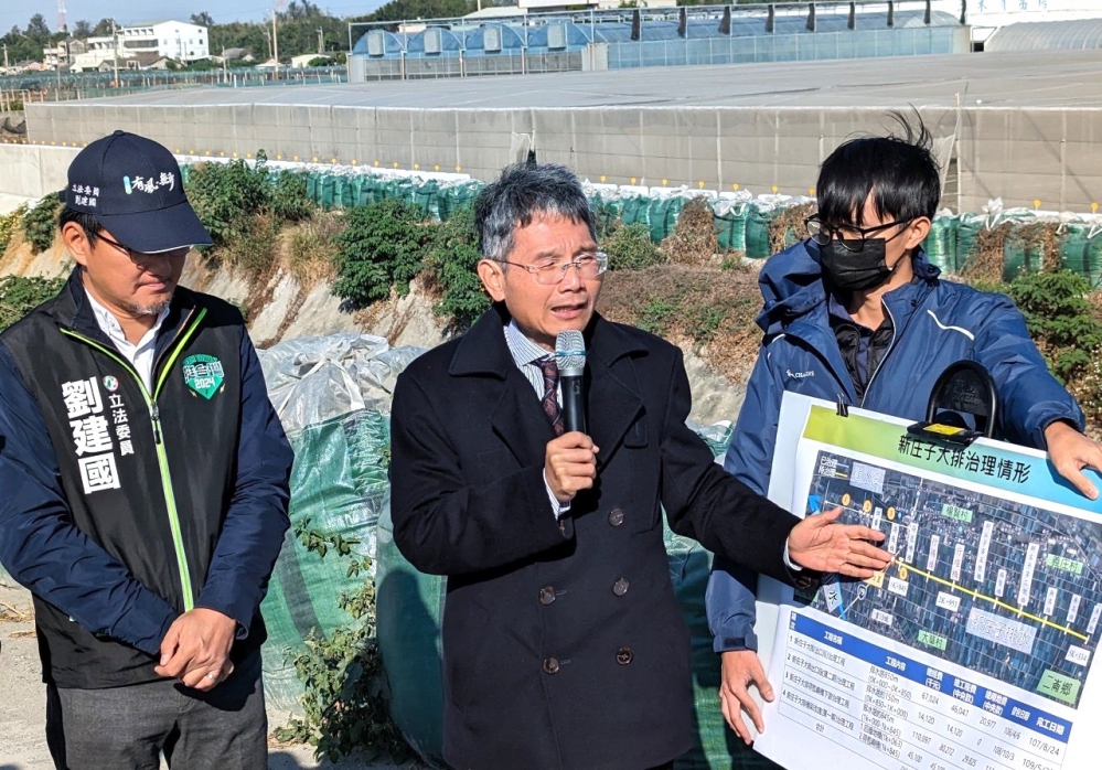 經濟部次長賴建信表示,早在108年當時擔任水利署長,即應立委劉建國邀集前往二崙新庄子大排現地會勘,當時補助應急擋水隔板經費,但去年7月凱米颱風造成新庄子大排再度溢堤、潰堤,引發嚴重災情。