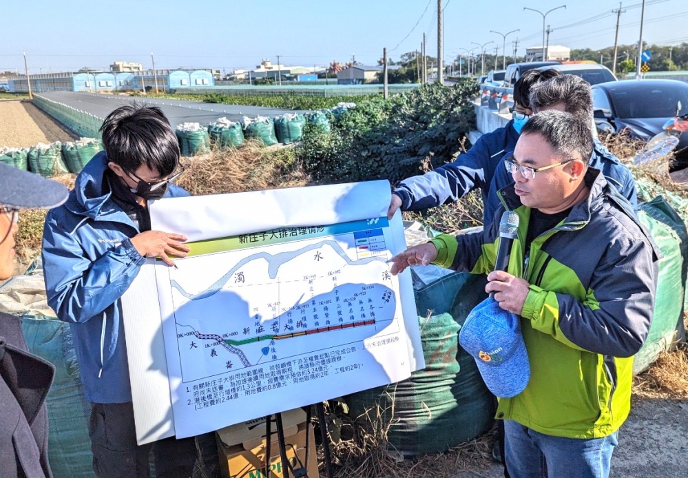 劉立委指出,回憶起凱米颱風期間,因強降雨與大潮疊加,造成新庄子大排溢堤,二崙鄉楊荷苞嶼、楊賢村、大華村、永定村等地區排水不及、災情慘重,當時情況相當危急,令人憂慮!