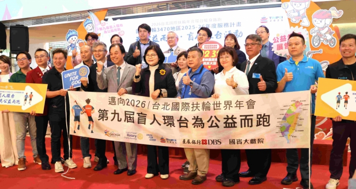 縣長張麗善表示,第九屆盲人環台為公益而跑活動12月27日從台北市起跑,預計1月11日返回台北,今天來到雲林縣政府,她感謝鍾和達總監帶領國際扶輪社3470地區社友到場加油打氣。