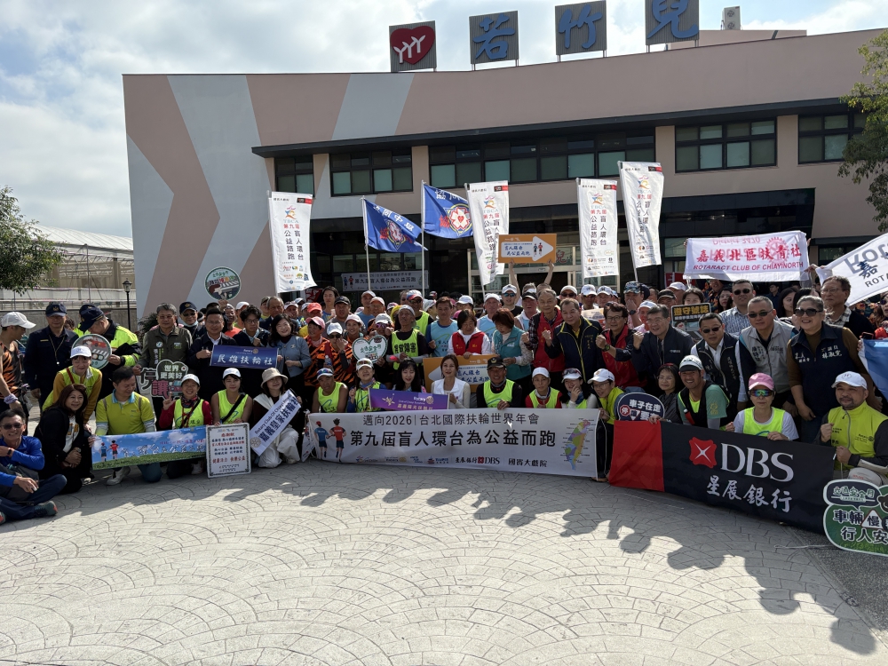 【記者張文一、任禮清嘉義報導】由台北公益路跑扶輪社、社團法人台灣盲人環台為公益而跑協會,及國際扶輪台灣12個地區共同主辦策劃的「第9屆盲人環台為公益而跑」活動,起跑第六天早上115年元旦抵達「財團法人若竹兒教育基金會」整備。每日全馬(42公里),為期16天的環台愛心長征,包括視障馬拉松好手吳春成、吳鎮安、饒賀凱、宋涵涵、李宏祐、徐薇雅、古奇哲、江松遠、香港自閉症跑者-曾載善(善仔)、日本視障者跑者保科清與日籍超馬好手關家良一等多名選手及陪跑團等共近50位參與。「鈺通大飯店」全額贊助中午餐食及捐助善款,若竹兒董事長林朋輝特別公開致謝其善舉。