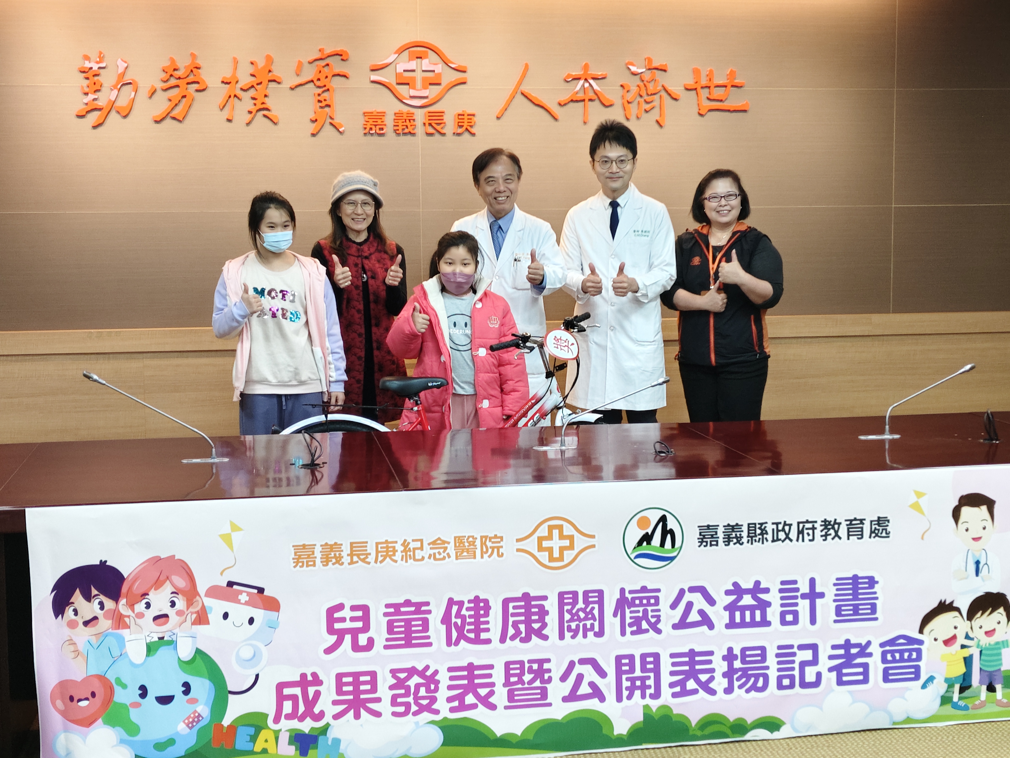 嘉義長庚專業團隊打造嘉義學童「健康防護網」,頒贈腳踏車給 BMI改善率成功的學童。(圖/記者任禮清攝)
