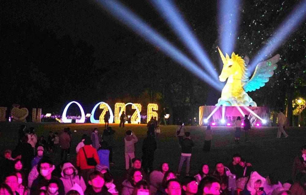 【記者陳信利/雲林報導】「115年斗六燈會」啟燈晚會今天(10日)晚間於膨鼠森林公園盛大登場,夜幕低垂後主燈「馳光之翼」隨著倒數亮燈,純白獨角獸展開光彩奪目翅膀,瞬間點亮整座園區,吸引大批民眾拿起手機搶拍,現場驚呼聲與掌聲此起彼落,為斗六新年夜空揭開序幕!