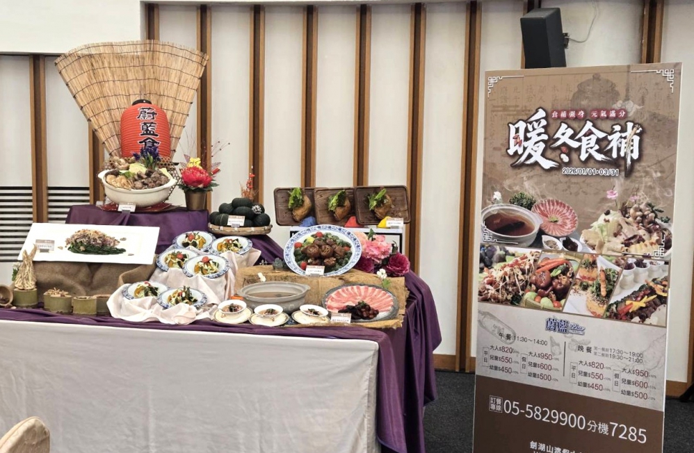 此外,由蔚藍西餐廳主廚顛覆創意企劃「暖冬食補」主題,將台灣人冬日必吃「懷舊薑母鴨」與香氣濃郁的「何首烏杜仲牛肉湯」納入無限量供應菜單中,還有「藥膳白玉燉牛肉」與「紅麴老滷豬圓蹄」等功夫菜,讓饕客在寒冬中暖身又暖心。