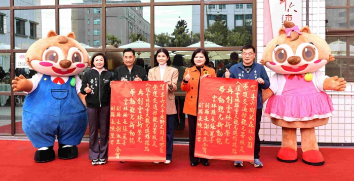 【記者陳信利/雲林報導】雲林縣政府積極提報並通過交通部觀光署審核,2026年新增「斗六膨鼠森林公園」及「斗六太平老街及周邊地區」兩處主要觀光遊憩據點,縣長張麗善、副縣長陳璧君今天(12日)至斗六市公所貼紅榜祝賀,肯定斗六觀光發展成果!