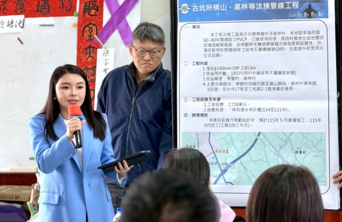 張立委說,目前自來水管管線多數老舊受損,影響到民眾飲水健康與用水安全與便利性,希望雲林縣政府、鄉鎮市公所與各級民代都能協助溝通與意見整合,讓改善工程儘早動工、儘速完工。