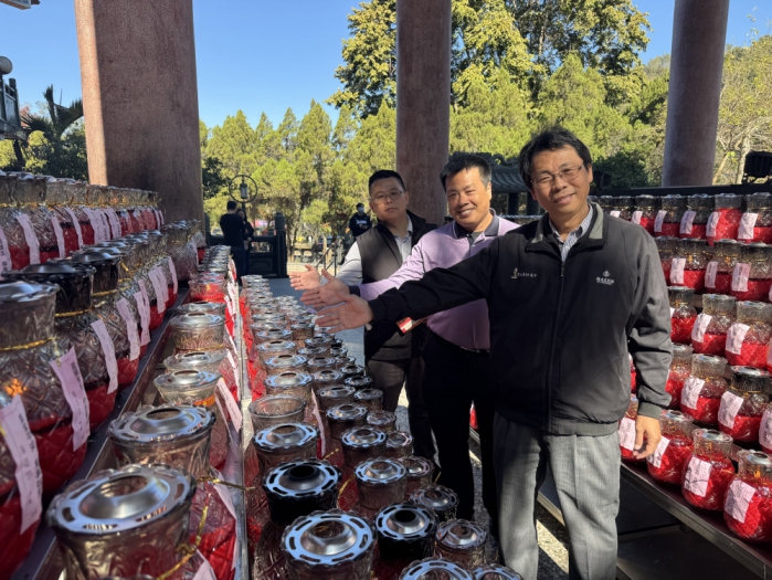 楊校長說,祈福的魚池鄉孔明廟,為全台唯一主祀諸葛亮的廟宇,歷史可追溯至民前十一年,廟宇坐落在青山環繞中,建築色彩華麗而莊重,右側高達三十公尺的孔明塑像,手持羽扇和書卷,象徵智慧、謀略和沉著,與學測考生所需的冷靜和判斷力不謀而合,也讓祈福更添文化意涵。
