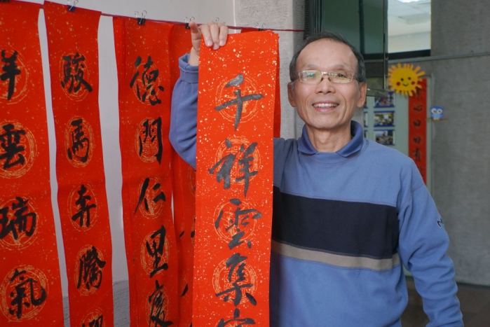 書法班長黃朝琴同學表示,2020年起跟隨謝昆恭老師學習書法,越寫越有興趣,同學間感情也很好,每個禮拜都期待來上課,這次參與春聯義賣,不但能和同學分享書法成果,也能為弱勢學生盡一份心力,覺得很有意義。