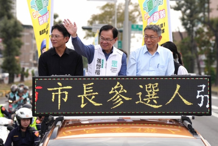 【雲嘉特派員陳信利/嘉義市報導】民眾黨徵召立委張啓楷參選下屆嘉義市長,張啓楷今天(17日)上午由創黨主席柯文哲等人陪同到市場拜票、宮廟參拜祈福,下午與主席黃國昌等人合體在嘉義市晶饌會館舉行造勢大會,之後進行車隊掃街拜票,懇託市民支持。