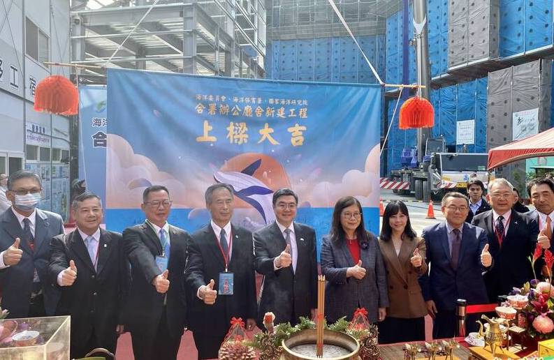 管碧玲表示,合署辦公廳舍是一棟地上7層地下2層的建築物,目前工程已推進到第7層樓,規劃取得建築能效1+級標示與綠建築及智慧建築的雙黃金標章,期望成為全台首座「近零碳建築」的中央政府廳舍,預計於2028年完工啟用,也期待成為強化國家海洋韌性的行動中心。