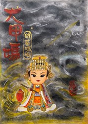 RU RU 老師於4樓展出的插畫創作展,是以敘事式創作構築完整展覽脈絡。作品從土地重測事件出發,延伸至媽祖遶境行腳與民間信仰文化,透過三個篇章描繪家庭情感、世代傳承與信仰力量,並介紹不同地域的媽祖形象及千里眼、順風耳將軍,展現台灣宗教文化豐盛且充滿生命力的一面。