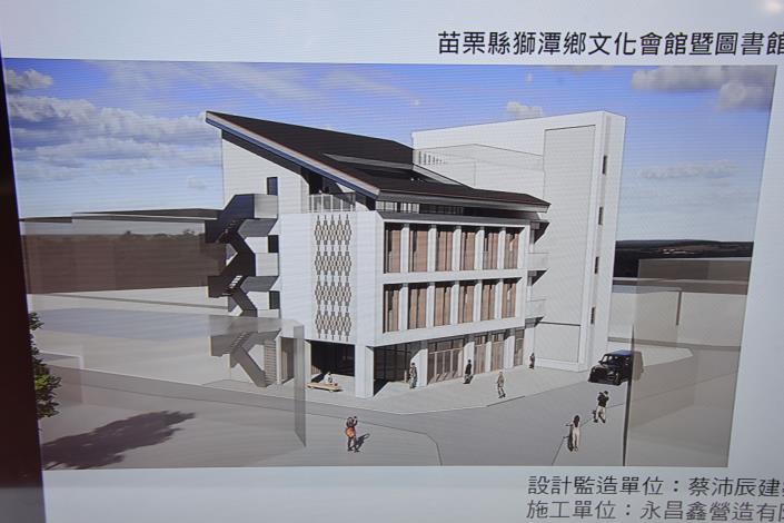鍾東錦說,嶄新的文化會館暨圖書館,建築外觀與內部設計都非常理想,多重功能也很適合鄉親利用,相信建築竣工後,不僅會獅潭市區景觀改變,也會成為醒目的新地標。他感謝中央對苗栗的支持,苗栗也會配合中央推動的各項政策,諸如電力、水力的開發等,縣府團隊未來將在議會監督鞭策下,做好該做、正確的事。
