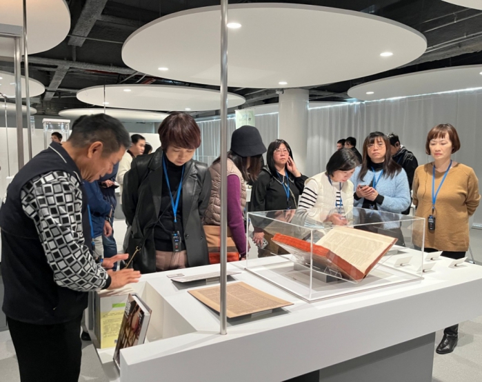 參訪行程中,市府團隊帶領新北市團隊走訪圖書館各閱覽空間,並分享兒童閱覽區、青少年閱覽區主題書展的策劃經驗,以及「數位光境」如何結合科技應用,拓展閱讀體驗。透過具體案例與實務操作說明,讓新北團隊更深入理解在開放式空間中,如何同時兼顧服務效率、閱讀品質與市民使用彈性。