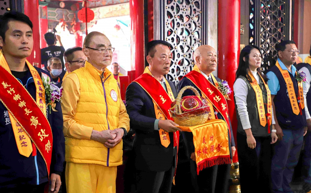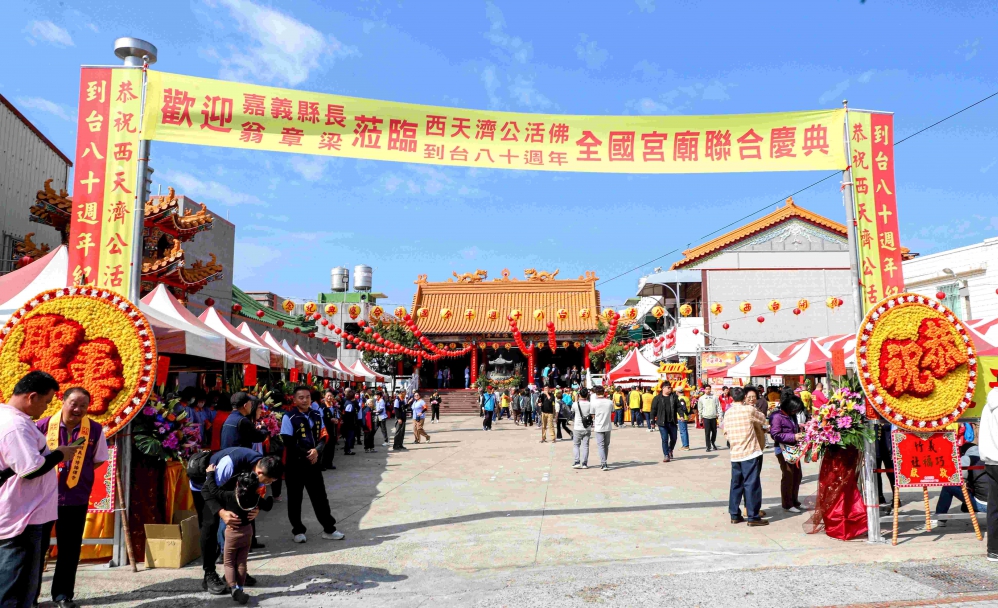 【雲嘉特派員陳信利/嘉義縣報導】嘉義縣義竹鄉修緣禪寺今天(24日)舉辦「開台西天濟公活佛到台80週年全國宮廟聯合祈安賜福慶典」,邀集全國宮廟及宗教界賢達交流祈福。縣長翁章梁、前國防部長馮世寬、義竹鄉長黃政傑、縣議員黃金茂、翁聰賢等人出席,共同見證濟公活佛到台80周年。