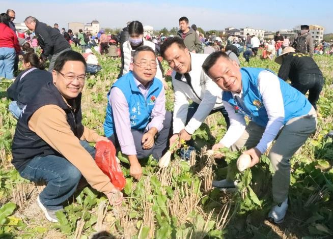 (特派員陳明/苗栗報導)嘿呦嘿呦拔蘿蔔,苗栗市公所與苗栗市農會首次攜手嘉盛、嘉新兩里發展協會,25日上午在嘉盛東街與東路交界處農田(嘉盛段931-936地號)共同舉辦「2026苗栗市親子樂活蘿蔔節」。秘書長陳斌山表示,透過親自下田拔蘿蔔,市民不僅能體驗農事樂趣,更能學習食物從產地到餐桌的過程,培養健康飲食習慣並感受農友的辛勞。