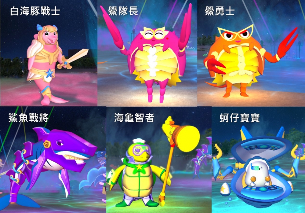 燈區來自海洋各路英雄戰將挺身而出,在鱟隊長的帶領下,白海豚戰士迅捷如光、鯊魚戰將敏銳掃射、海龜智者足智多謀、蚵仔寶寶勇敢機智。