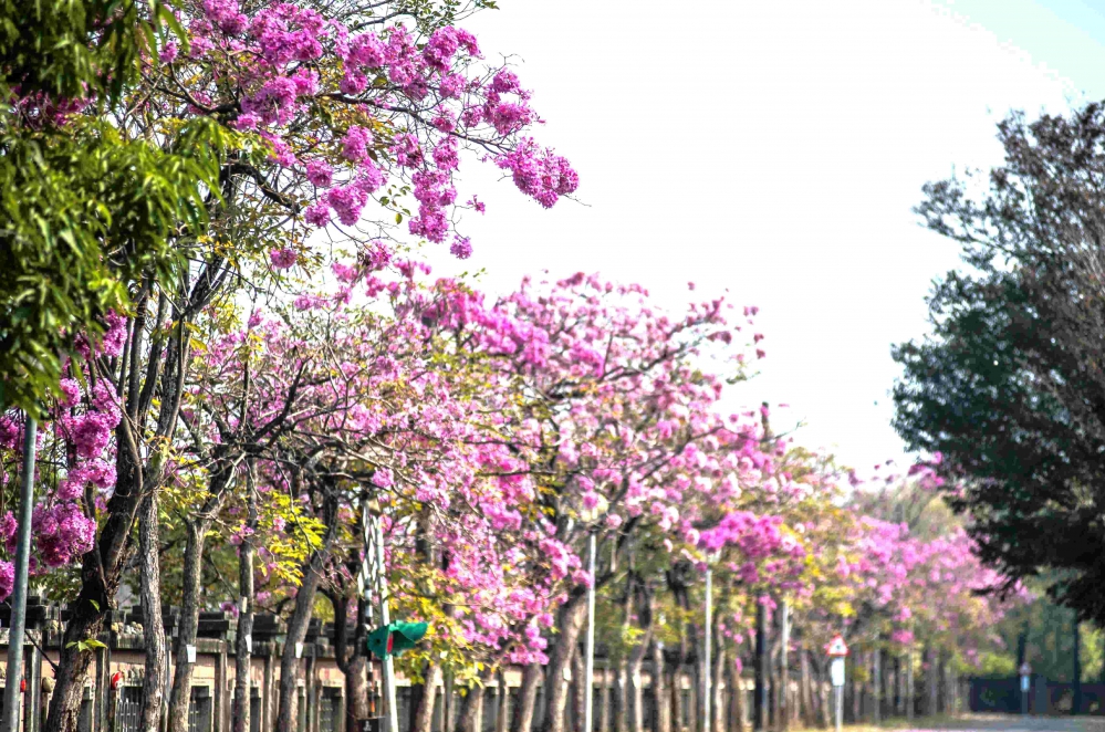 此外,市區洋紅風鈴木也接力盛開,為街頭添上一抹浪漫粉紅。