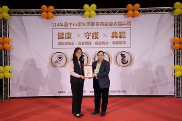 (特派員陳明/臺中報導)為感謝台中市醫療院所及衛生醫事相關單位長期投入公共衛生業務、共同守護市民健康,台中市政府衛生局今(28)日在市政府舉辦「114年度台中市衛生保健業務績優表揚典禮」,表揚176家醫療院所、藥局、公協會、基金會及照護機構等績優單位。典禮中共頒發1項感謝狀、5項獎項及1項認證標章,肯定各界在婦幼照護、癌症防治、慢性病防治、戒菸服務、預防及延緩失能,健康醫院推動等面向的卓越貢獻,攜手築起市民健康防線。
