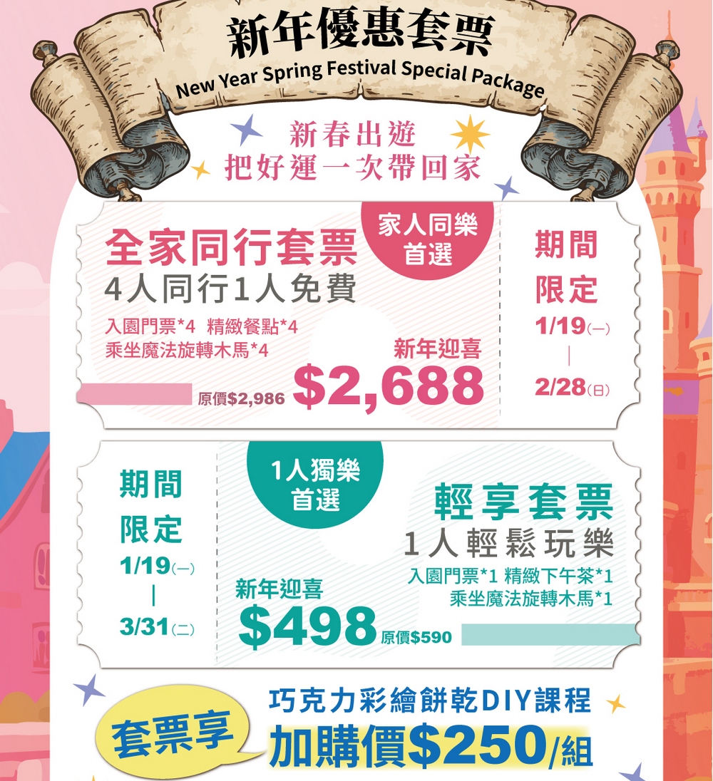 歐樂沃築夢城堡配合春節活動同步推出新年限定套票。(圖/歐樂沃築夢城堡提供)