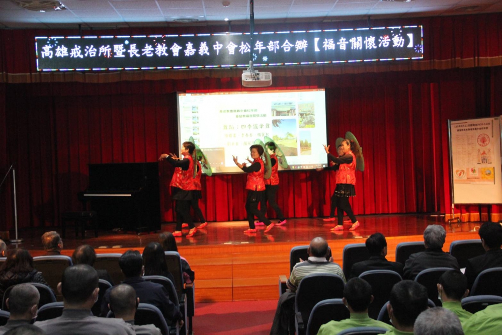 活動由嘉義中會松年部潘文如部長開場介紹,說明該部係由65歲以上長者所組成,致力於以生命經驗關懷社會、傳遞正向能量,隨後由陳美鳳老師等6名成員身著民俗舞蹈服裝登台演出,在〈四季謠〉樂聲中,手持紙傘、舞姿輕盈,展現長者活力與生命風采。