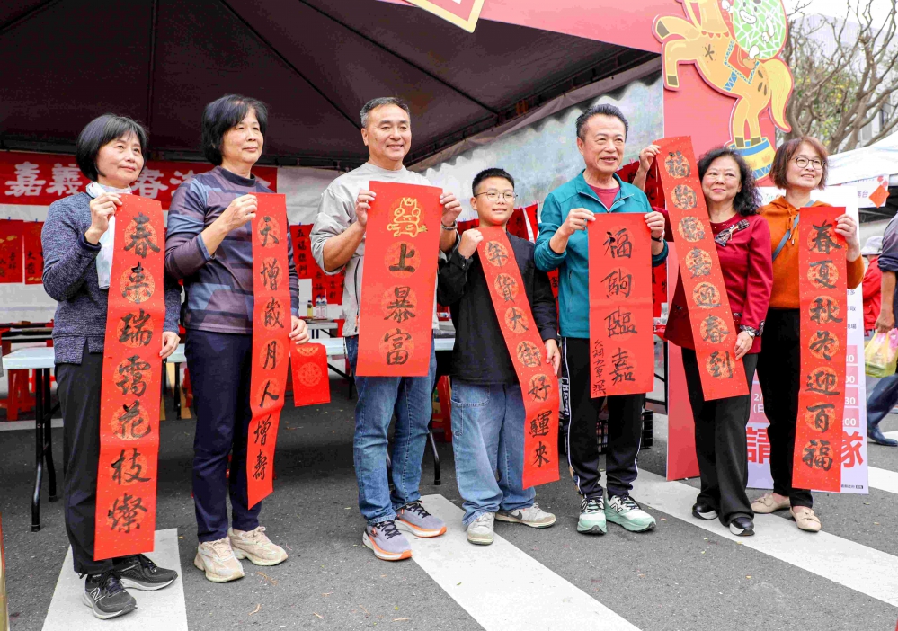 嘉義縣書法學會書法家到場揮毫寫春聯,讓民眾免費索取;嘉義縣茶道花藝推廣協會在場設置高山茶席,讓大家採買之餘也能細細品味嘉義茶文化;縣內多家品牌咖啡莊園到場分享嘉義精品咖啡獨特風味,展現農業多元魅力。