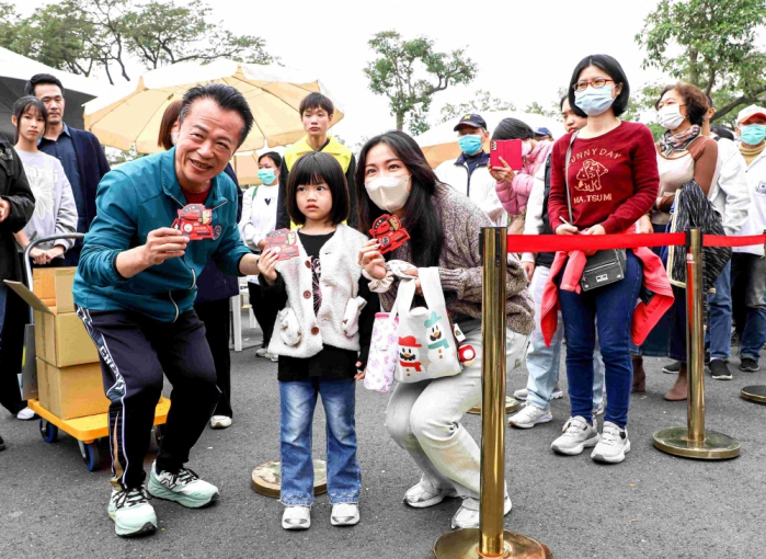 縣長翁章梁今天到市集與書法大師楊貴真一同揮毫寫春聯,並發放馬年小紅包,為年貨大街揭開熱鬧序幕,吸引許多民眾排隊領取。