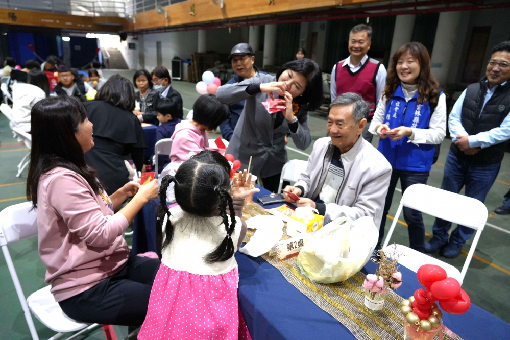 縣府社會處長林文志表示,歲末是團聚的時刻,縣府特別安排50多位孩子與張縣長歡聚,感謝張縣長前來陪伴孩子,讓孩子感受有人關愛、有人支持,過一個很溫暖的年。
