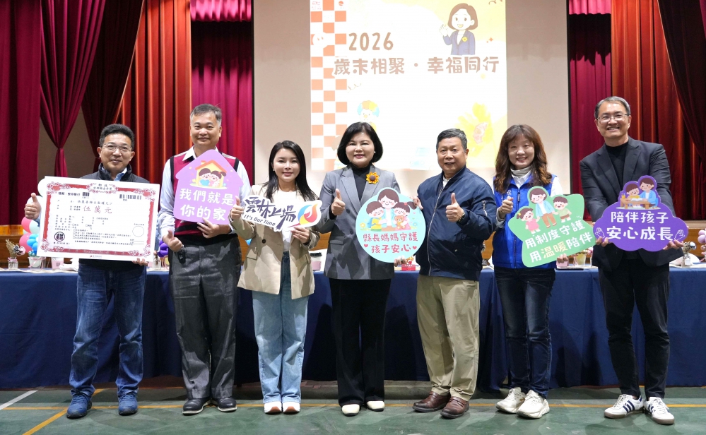【記者陳信利/雲林報導】雲林縣政府今天(1日)於北港南陽國小舉辦「歲末相聚・幸福同行」活動,縣長張麗善、立委張嘉郡、縣府總顧問張清良、社會處長林文志、雲林家扶中心主委陳燦勲、主任廖志文、憶霖公司經理林新傑、廠長莫樹芳與縣長監護兒少、寄養家庭及親屬家庭溫馨相聚,共度充滿祝福與希望的美好時光。