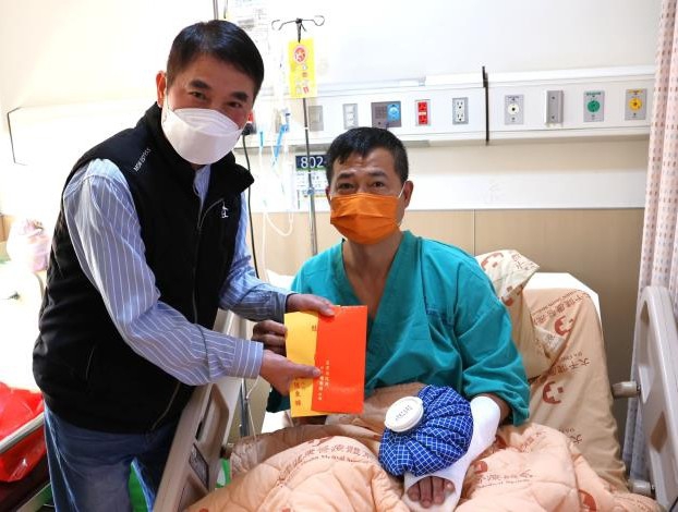 南苗市場男子砍傷員警 苗栗縣長鍾東錦慰問員警及熱心受傷民眾 感謝英勇表現