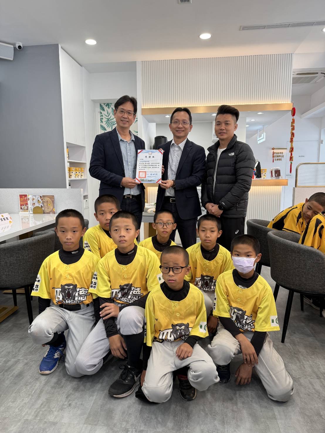 圖:四德國小棒球隊遞交感謝狀予吳家德總經理
