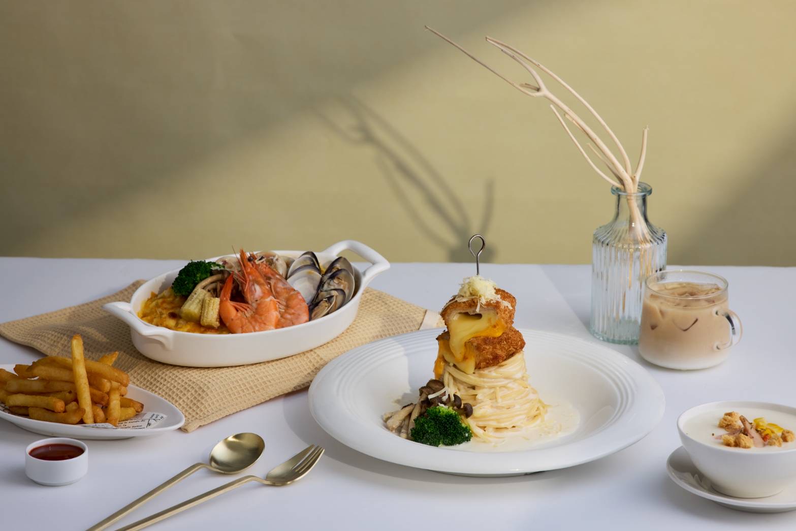 在風味升級方面,NU PASTA 同樣展現職人精神。曾創下亮眼銷量的「金燦起司豬排」正式成為品牌常態主力餐點,滿足消費者對濃郁起司與厚實豬排的喜愛。品牌獨家研發的「皇蝦醬」系列也同步升級,透過長時間低溫萃取鮮蝦精華,使醬汁層次更加濃厚飽滿;創意料理部分,則推出話題新品「蒜香黃金玉米小干貝」系列,巧妙融合海味鮮甜與玉米清香,為饕客帶來耳目一新的味蕾體驗。