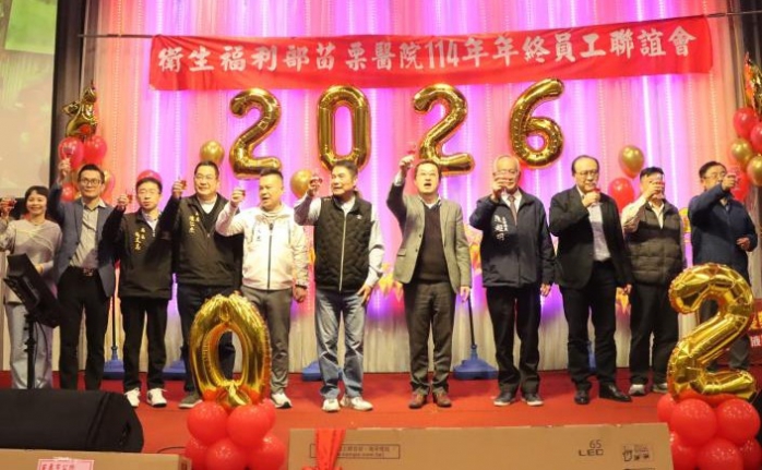 (特派員陳明/苗栗報導)苗栗醫院4日晚間在苗栗千璽會館舉辦2026苗醫忘年會,縣長鍾東錦感性表示,苗栗醫院始終堅守第一線,陪伴鄉親走過生病與康復的關鍵時刻,是地方最堅強的醫療後盾。為感謝醫護人員一年來的辛勞付出,縣長特別提供液晶電視作為抽獎獎品,並加碼贈送兩組「泰安觀止溫泉券」,讓晚會在溫馨氛圍中更添驚喜與歡樂。