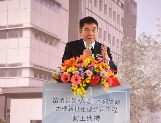 縣長鍾東錦感謝內政部抓住最後一筆前瞻計畫經費,宛如及時的臨門一腳,讓警政大樓得以順利動土開工,然因樓地板面積不足,尚須興建第二棟大樓,未來不論硬體建設或軟體設備,還希望中央持續挹注資源,也感謝正副議長帶領的議會團隊,支持縣府自籌第二棟大樓所需約5億元經費,讓警察人員擁有舒適辦公環境,有了現代化科技設備,不論維持交通、守護治安或為民服務,均將如虎添翼。治安良好穩定,自會吸引更多優質廠商到苗栗投資,相對也增加就業機會。