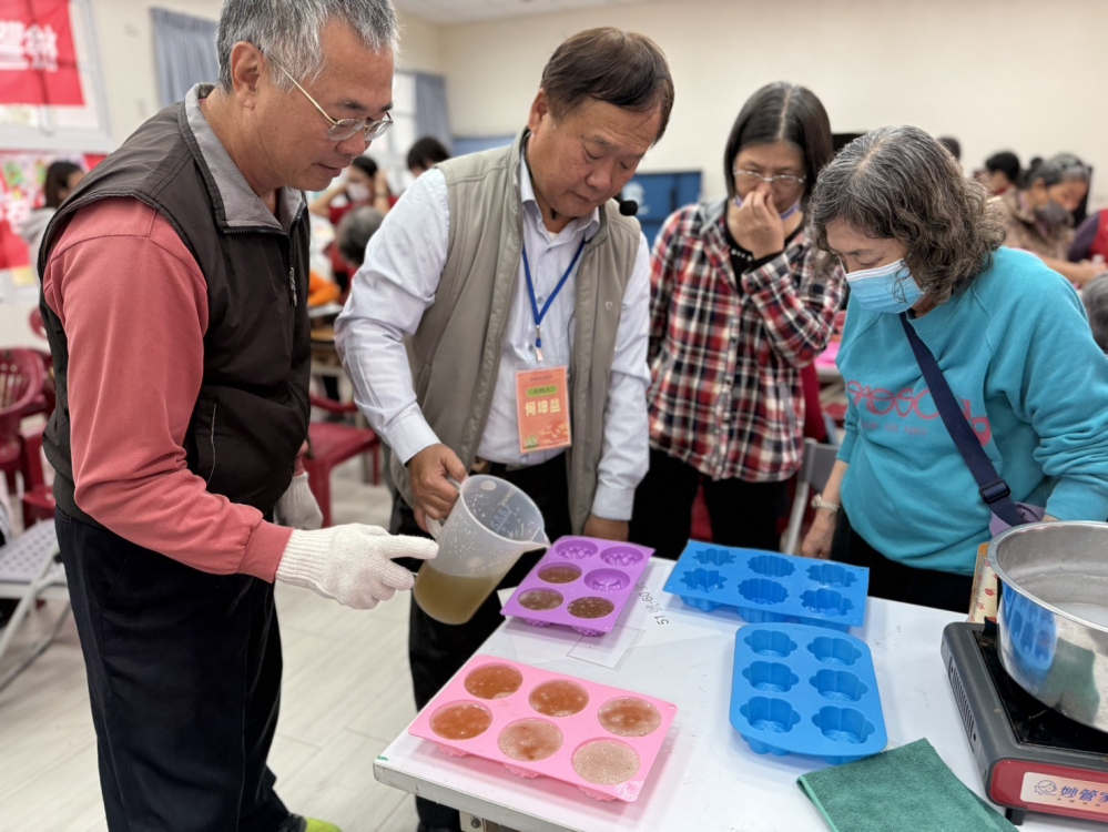 嘉大師範學院陳明聰院長表示,延續去年綠美化盆栽活動的良好回饋,今年以在地植物栽培與永續應用為核心,透過手工皂與洗髮精製作,將環境教育與自我照顧自然融入居民生活,展現大學以專業陪伴社區、與居民共同學習與成長的實踐方式。