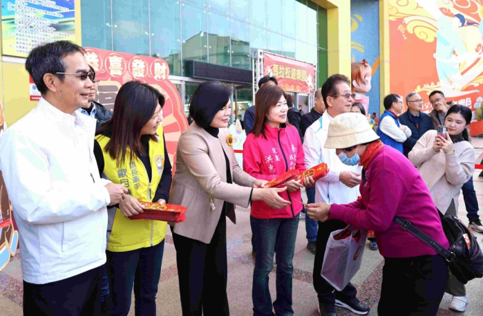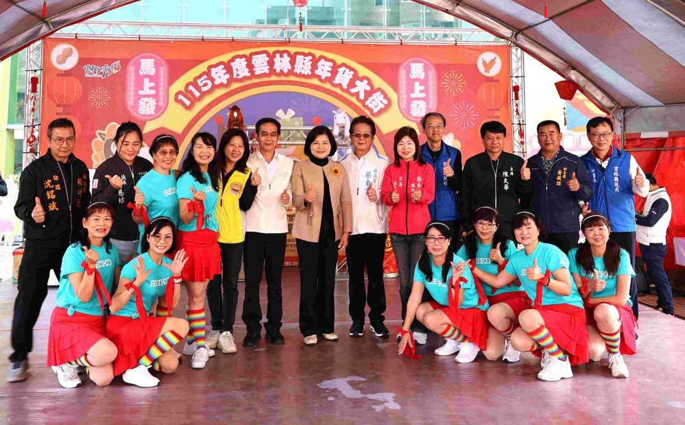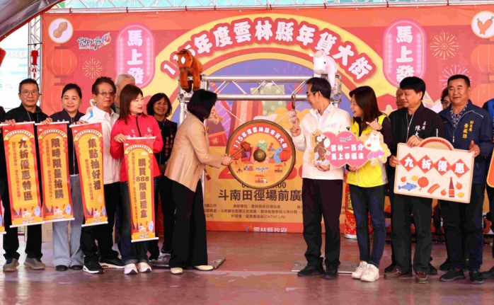 今天由縣長張麗善敲鑼揭開序幕,斗南鎮長沈暉勛、議員蔡東富及簡慈坊、雲林縣土風舞協會理事長洪惠玲、斗南鎮民代表會主席陳大華、副主席黃藏諒及多位代表、里長等人到場共襄盛舉,邀請全台民眾把握周末走進雲林斗南採買年貨、享優惠、迎新年。