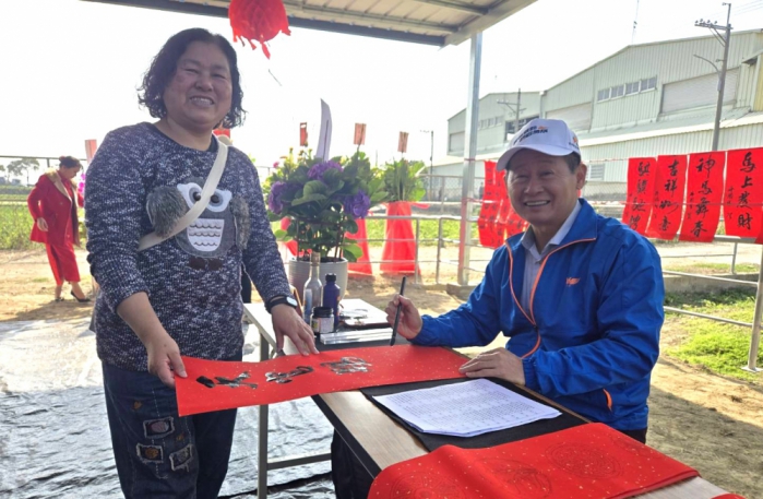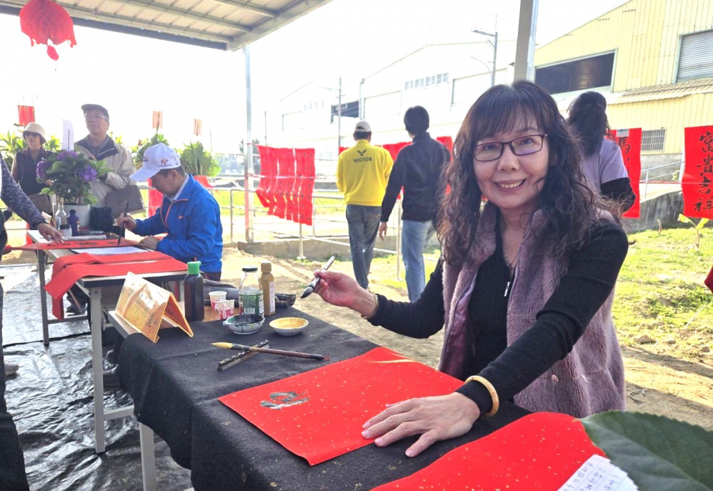 迎接春節到來,知名書法家林周生、徐秀慧等人,受邀現場揮毫贈春聯,洋溢喜氣,現場並有各式樂器精彩表演,氣氛熱絡。