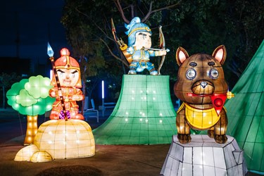 此外,燈組更特別設計互動驚喜,民眾只要靠近義犬,就會聽到可愛的「汪汪」聲響,讓賞燈過程充滿趣味與溫度,也象徵忠犬守護不息、庇佑平安。