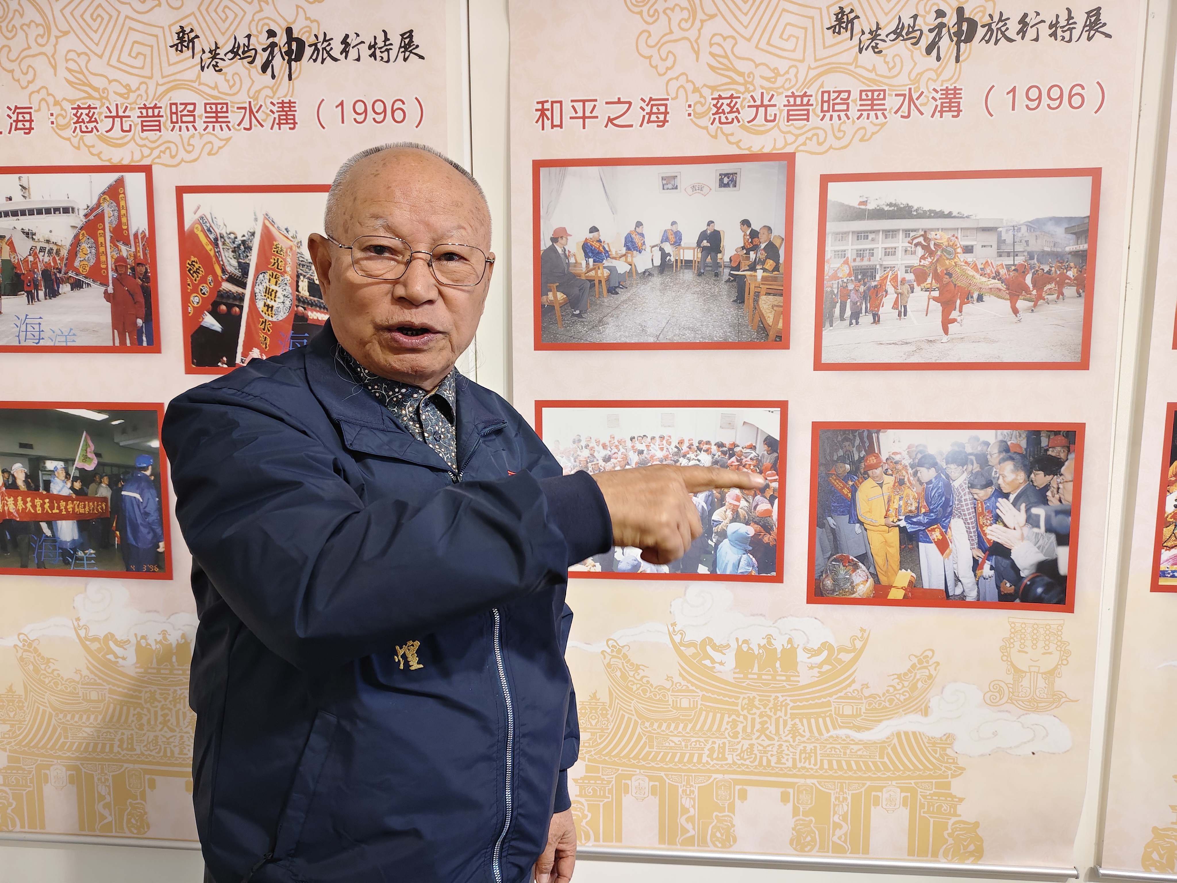 董事長何達煌表示,展覽透過八大展區,回顧近三十年來開臺媽祖如何一步步走出廟埕,走進社會與世界。 從1996 年兩岸局勢緊張之際,新港奉天宮信眾請示媽祖出巡,開臺媽祖首度跨越黑水溝,巡行臺、澎、金、馬離島,將香火與平安符送至前線官兵手中,以信仰安定軍民,成為臺灣宗教史跨海遶境的典範。