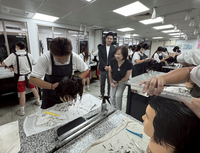 美容科洪瑜娟主任表示,校方與仰望教育基金會合作,幫助美容科三年級學生,利用週六進行為期12週的高強度男子理髮乙級訓練,基金會全額補助考照報名費、材料費及師資鐘點費,校方則提供完善設備與專業師資,期間還安排至港務局白色饗宴乳癌病友妝髮服務及萬丹萬泉寺為長者義剪等,讓技藝在服務中累積,最後20學生有18位考取乙級證照。