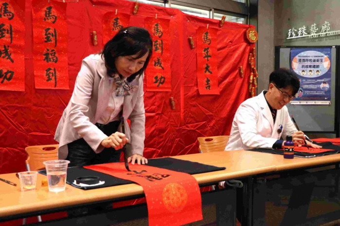 活動邀請知名美術作家黃寶賢老師現場揮毫贈送春聯,以筆墨傳遞祝福與文化溫度。嘉基也同步預告,黃寶賢老師將於今年四月在嘉基珍珠藝廊舉辦個展,屆時將展出多件精彩作品,邀請民眾走進醫院,也能親近藝術、感受療癒力量。