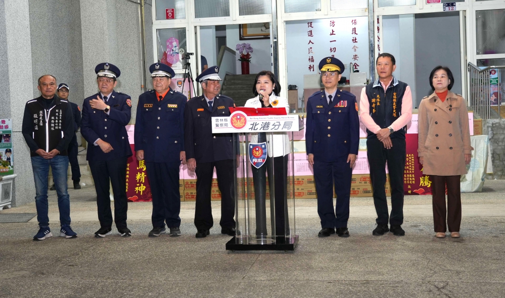 張縣長肯定警察同仁近年在反詐騙、反毒及肅槍等專案中的優異表現,成績屢獲全國肯定,展現雲林警政團隊的專業與用心。她並致贈慰勞品,感謝勤務人員辛勞付出,並祝福大家新的一年身體健康、工作順利。