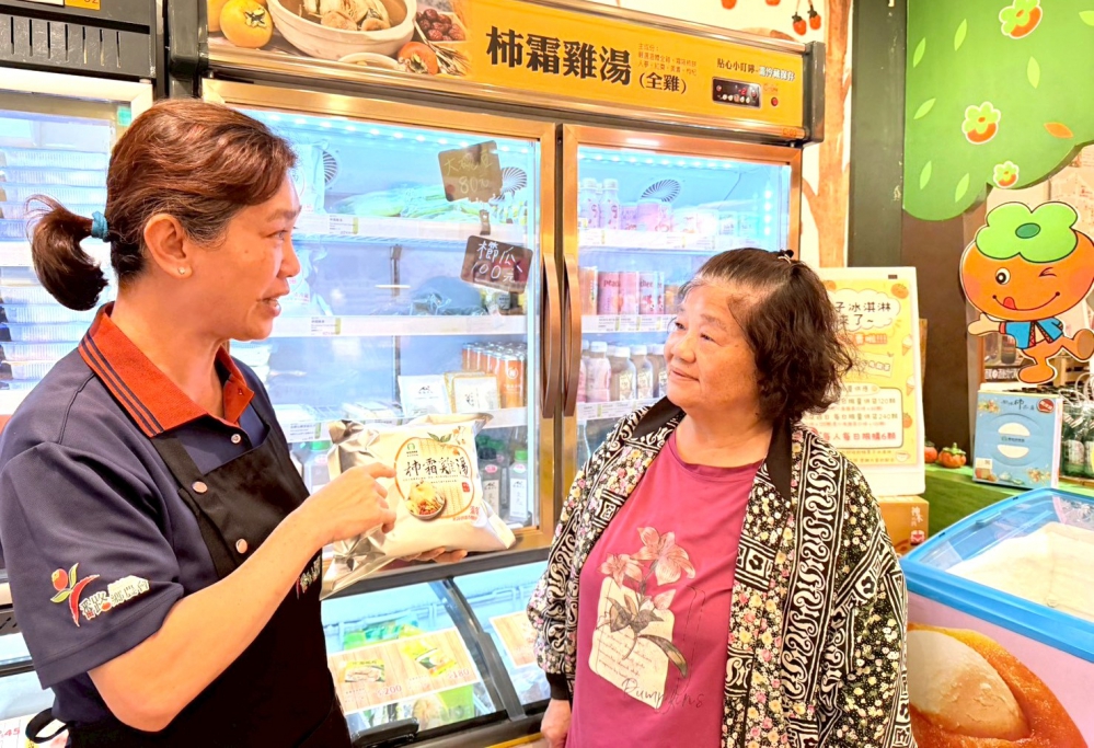 趙總幹事表示,「柿霜雞湯」於民國112年與中醫師劉淑清合作開發,以番路特有柿霜為基底,搭配人蔘鬚、黃耆等中藥材,結合國產溫體雞肉製成即食料理包,主打秋冬滋補、溫潤順口。