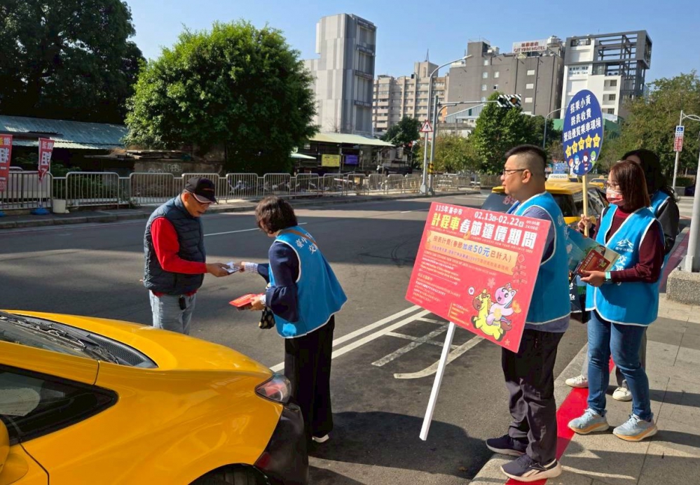 (特派員陳明/臺中報導)為感謝計程車駕駛年節堅守崗位投入疏運服務,台中市計程車春節加成正式啟動,自今(13)日起至2月22日(大年初六)止,實施為期10天的「春節費率」,乘客搭計程車每趟次加收50元,2月23日0時起恢復平日正常收費方式,不再加成。台中市政府交通局提醒,民眾於乘車時間若未從加成運價時段跨至加成運價時段,則依「上車時間」為準,不得加價,籲請駕駛與乘客注意配合,保障乘車權益。