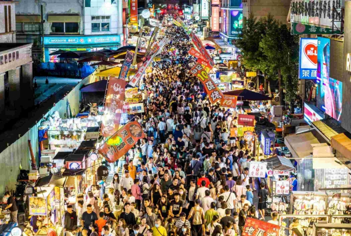 傍晚時分,粉紅超馬前往熱鬧滾滾的文化路夜市,夜市攤位間已擠滿品嚐美食的遊客,用美食為愉快的一天畫下句點。