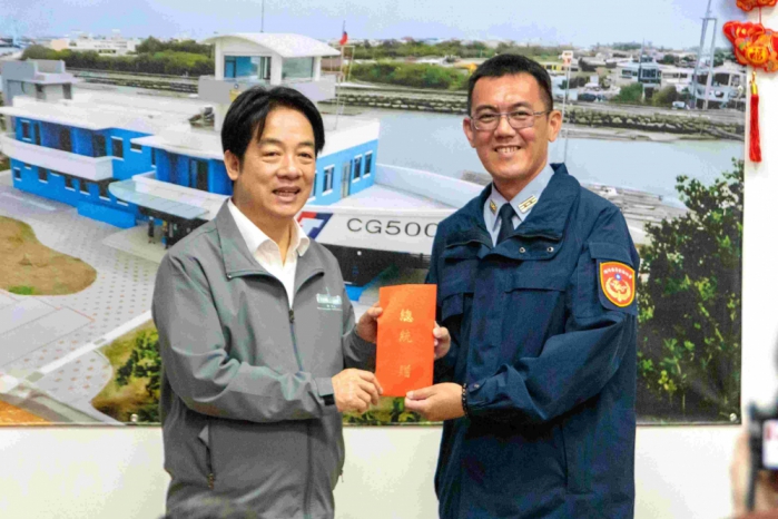 【雲嘉特派員陳信利/嘉義縣報導】總統賴清德春節前夕至嘉義縣慰勉警察、海巡人員辛勞,縣長翁章梁今天(15日)陪同賴總統先後前往水上分局及布袋漁港安檢所。賴總統說,3月3日至15日台灣燈會在嘉義縣,今天特別來為大家加油及慰免辛勞,並致上加菜金及年節福袋禮包。