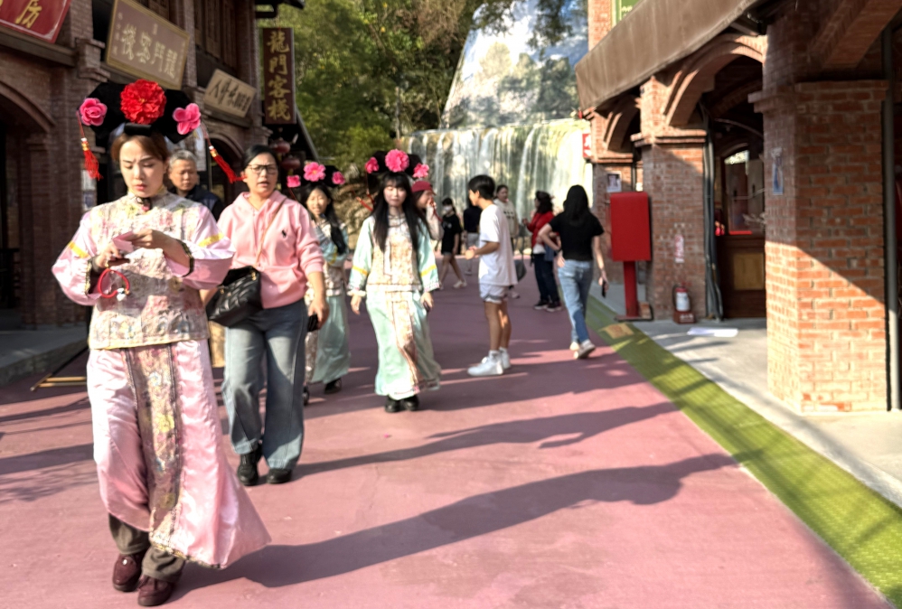 園區落實安全巡查與便民服務,保潔、引導崗位全員在崗,保障遊覽舒適順暢。遊客們漫步園區,欣賞表演、拍照打卡,感受懷舊電影氛圍與新春喜氣,氣氛溫馨熱鬧。