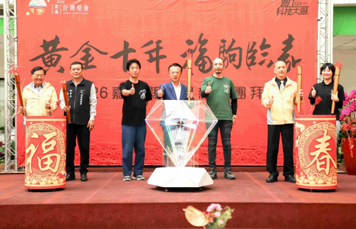 隨後縣長翁章梁與副縣長劉培東、李光耀秘書長率眾按下啟動儀式按鈕,隨著燈光亮起,象徵「嘉義燈會」即將到來,也宣告縣府團隊新年度正式開工。