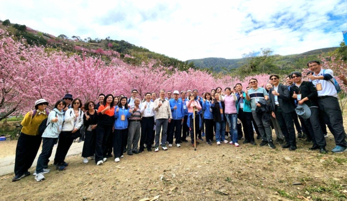 會前,與會人員先前往草嶺石壁賞櫻,適逢花季盛開,山頭花海綿延、景色宜人,眾人盛讚景致優美,肯定雲林山區觀光發展成果。