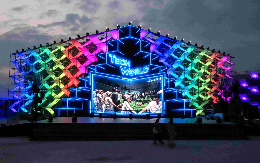 翁縣長等人場勘過程,沿途檢視無人機展演舞台周邊動線與觀賞視野,並巡視Techworld館、智慧城市燈區、環保燈區、大遊行觀禮台及企業光廊等重點區域。