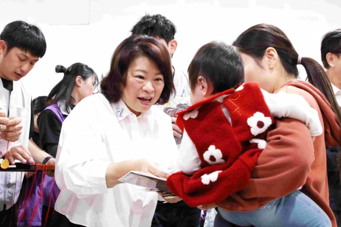 市長黃敏惠擔任啟蒙老師為孩子們點硃砂,並發送馬年限量的開運小紅包,祝福每位嘉義市的寶貝們「馬上平安、馬上幸福」!